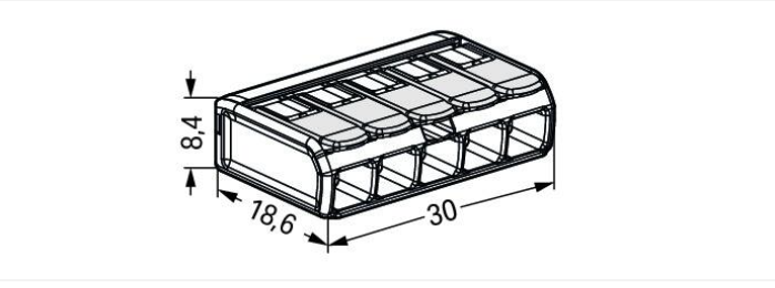 Borna de conexión COMPACT; para cualquier tipo de conductor; para aplicaciones en zonas Ex; máx. 4mm²; 5 conductores; con palancas de accionamiento (gris); Carcasa transparente; Temperatura de servicio (máx.): 105 °C; 4,00 mm²; transparente.