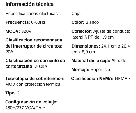 SUPRESOR DE PICOS SERIE X 480/277V3ØY 400kAIn20kA LCD NEMA4 Marca: LEVITON Tiempo de entrega: 2 semanas.